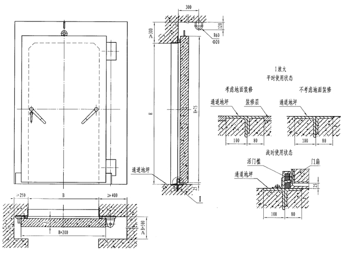 此類門的特點(diǎn)是平時不設(shè)門檻,地面平整,便于人員或車輛通行;戰(zhàn)時快速設(shè)置門檻,以滿足防護(hù)、密閉要求。