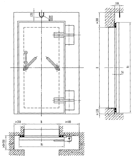 該類(lèi)門(mén)共有防護(hù)防火密閉門(mén)與防火密閉門(mén)兩種類(lèi)型,顯著特點(diǎn)是防火能力強(qiáng),門(mén)扇中有防火填料,除具有普通防護(hù)密閉門(mén)或密閉門(mén)的功能外還能防火、防煙,其防火等級(jí)為甲級(jí)。
